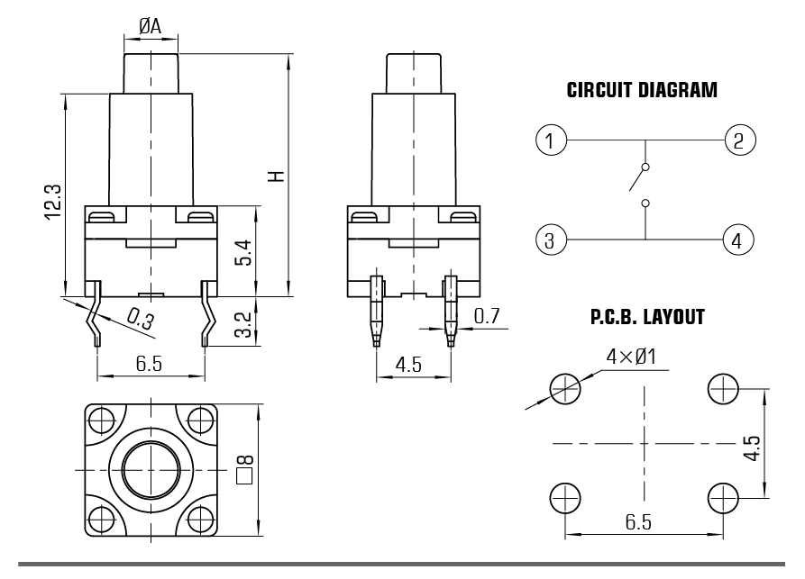 TRAVEL0.25mm±0.1mm