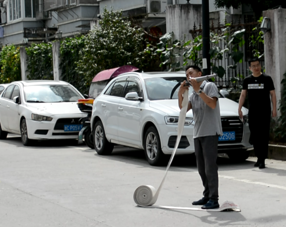 聽到警報后,各個員工們立即用濕毛巾或手捂住嘴巴,彎腰迅速有序地從安全通道跑出,安全撤離至安全地帶。整個疏散過程快而不亂,緊張有序。