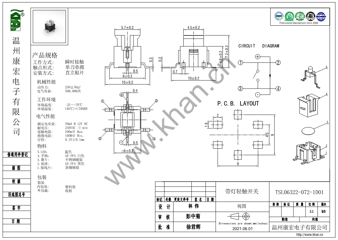 | 行程 | 0.25mm±0.1mm | |